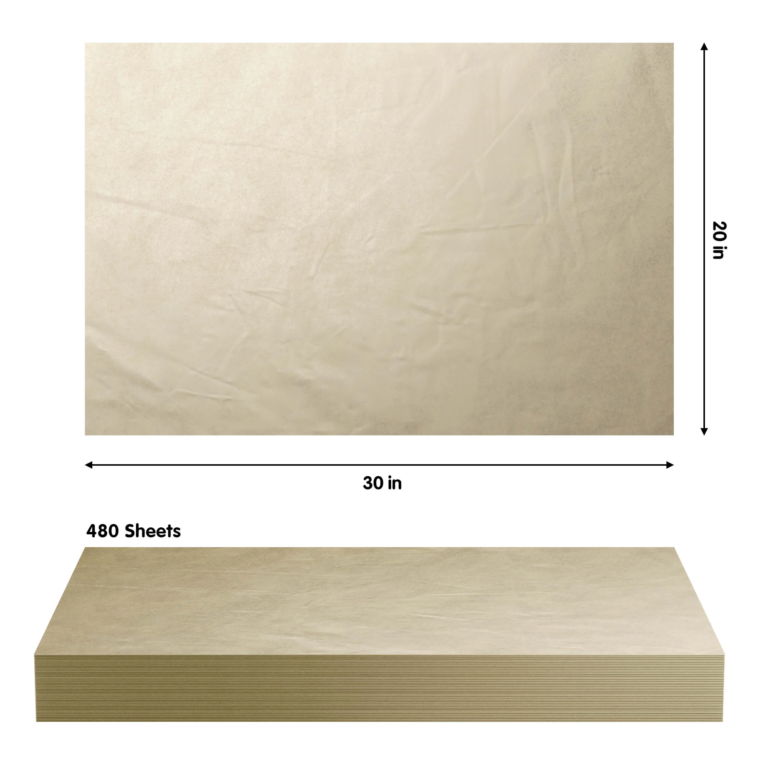 Each sheet measures 20 inches by 30 inches, providing ample coverage for various uses from delicate gift wrapping to classroom projects or DIY crafts. With 480 sheets per pack, it provides ample supply for multiple occasions or large-scale projects, making it ideal for small businesses looking to enhance their packaging with a special touch. Its rich gold color goes almost with anything, making it easy to match with other colors and decorate packages or gifts. Whether you're wrapping gifts for weddings, holidays, birthdays, or creating stunning decorations, our tissue paper will make your presentations are elegant and memorable.